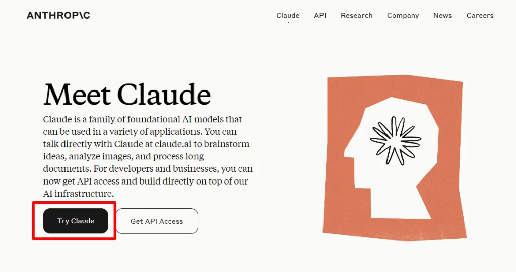 - Claude公式サイトの「Try Claude」ボタンをクリック