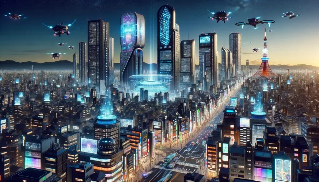 たとえば、下記の画像はDALL-Eに「近未来の東京を描いて」と指示してみました。